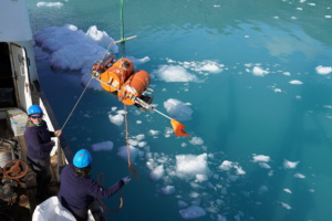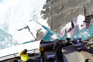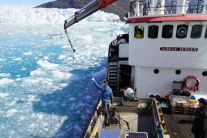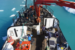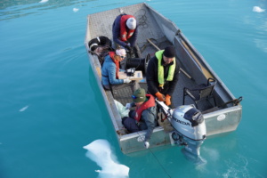 L’équipe observe la vitesse à laquelle les glaciers se déversent dans l’océan et ce qui se passe à ce moment précis.