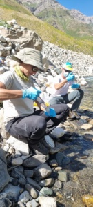 Julien étudie la vie microscopique des rivières glaciaires. Lorsqu’un glacier fond, l’eau s’écoule au fond de la vallée, formant une rivière glaciaire. Comme il y a de l’eau, la vie s’y développe et joue un rôle primordial pour les autres espèces situées en aval, un phénomène passionnant que Julien étudie.